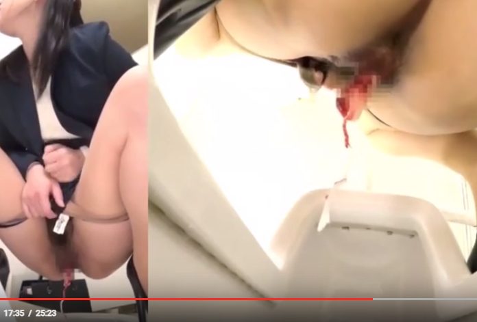 踏ん張り過ぎてタンポンを便器へ落としちゃってます。